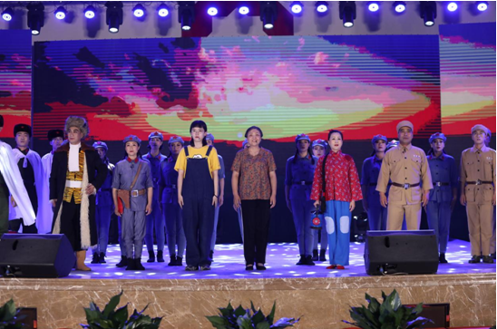 文藝演出結(jié)束,全場(chǎng)起立,共同高唱《沒有共產(chǎn)黨就沒有新中國(guó)》,熱烈掌聲經(jīng)久不息。