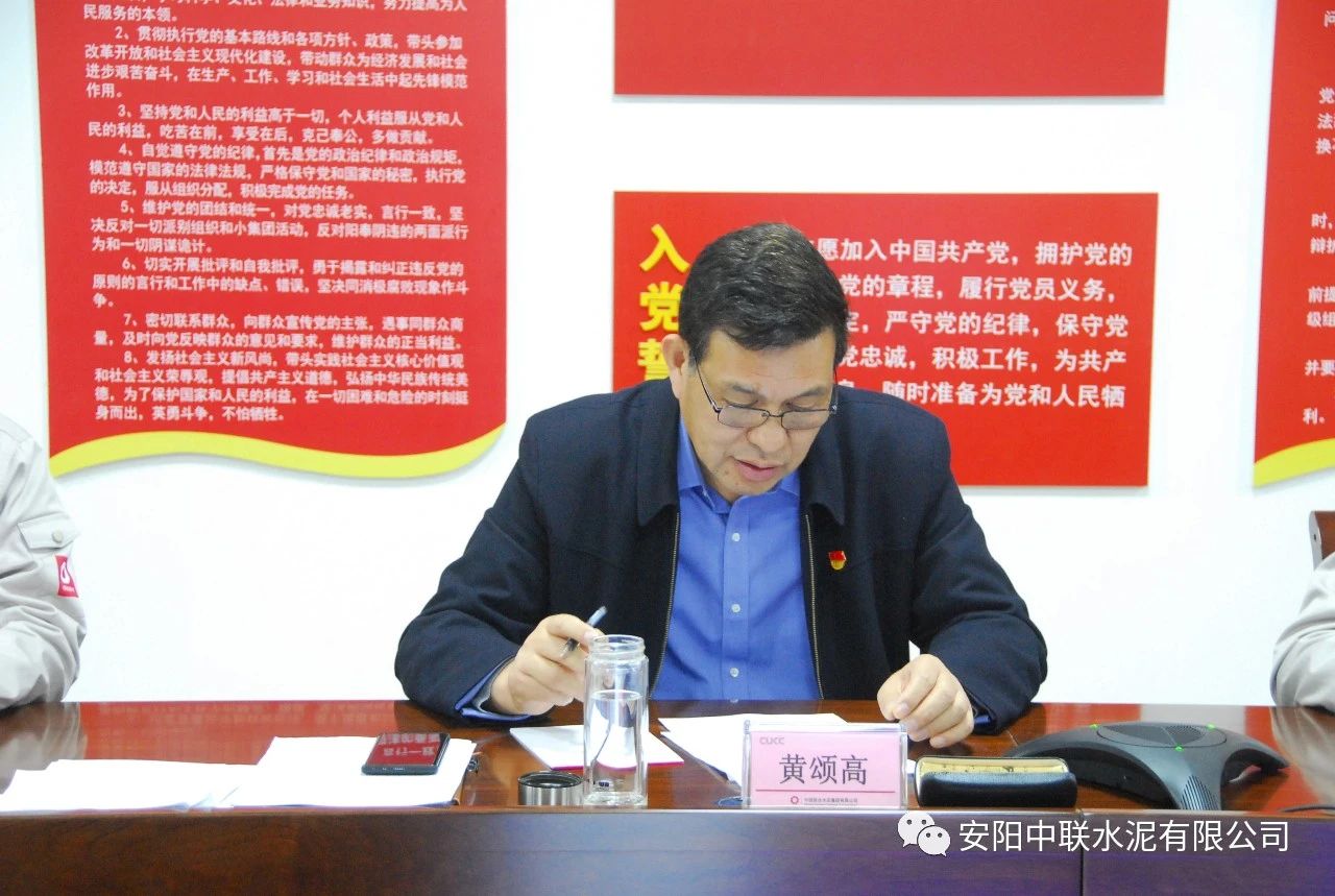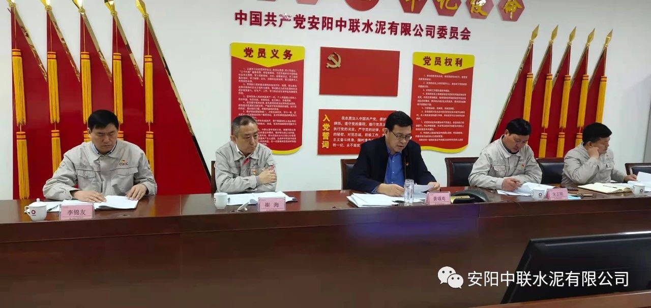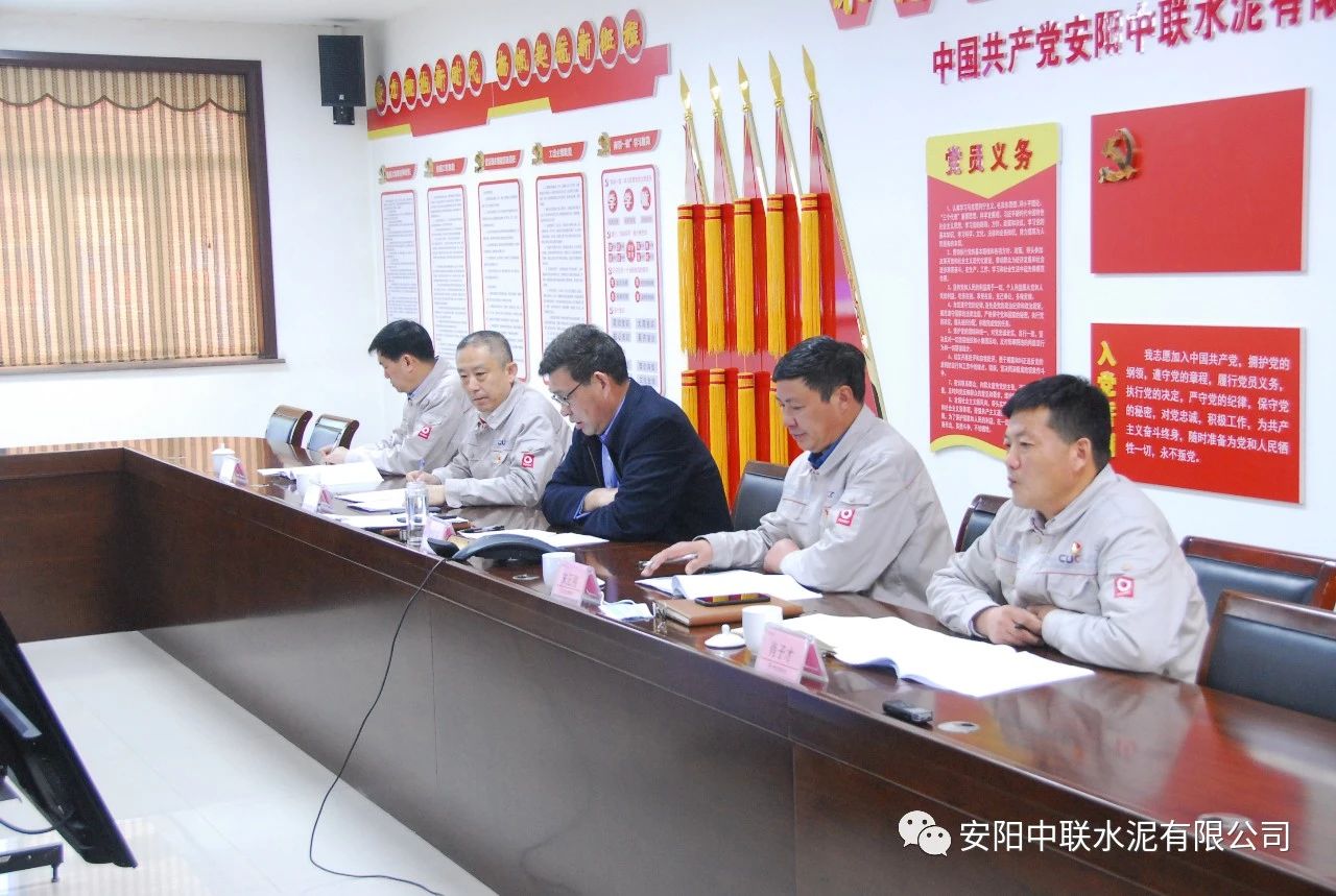 按照中國聯(lián)合水泥黨委關(guān)于認(rèn)真開好2020年度民主生活會通知要求,2月24日上午,安陽中聯(lián)2020年度黨員領(lǐng)導(dǎo)班子民主生活會在公司黨員活動室召開。中國建材股份黨委常委、執(zhí)行董事、副總裁,中國聯(lián)合水泥黨委書記、董事長崔星太通過視頻連線督導(dǎo)會議并作點評講話。中國聯(lián)合水泥黨群工作部主任侯萍、紀(jì)檢監(jiān)察室副主任董治及安陽中聯(lián)黨委委員、領(lǐng)導(dǎo)班子成員參加會議。安陽中聯(lián)黨委書記、總經(jīng)理黃頌高主持會議。